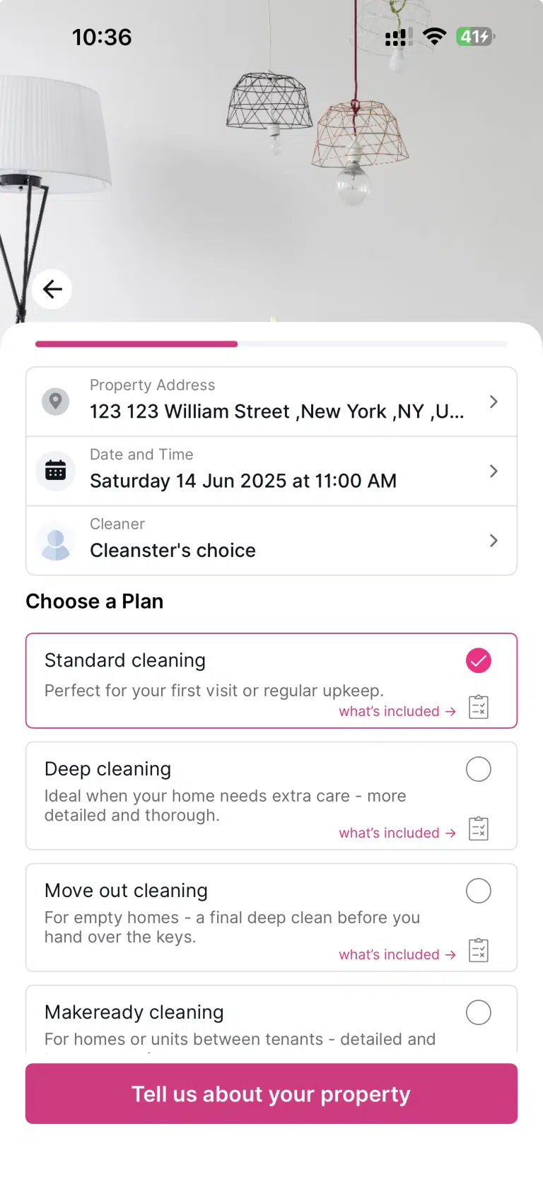 4. Escolha um plano de serviçoDecida se você precisa de um serviço de limpeza padrão, profunda ou de mudança.